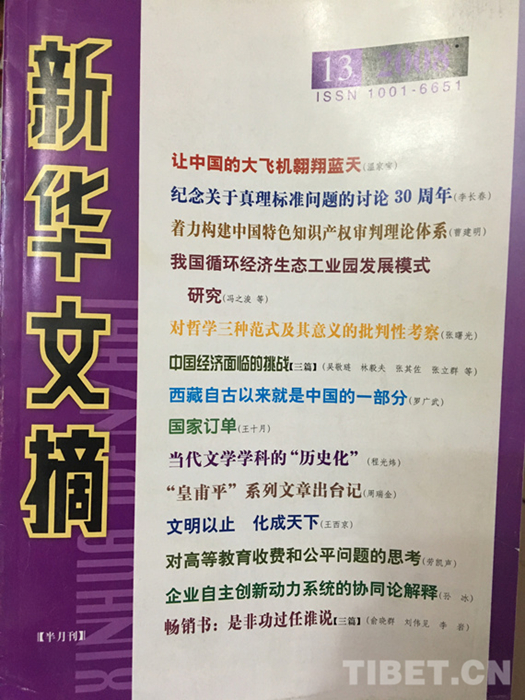 圖為羅光武《西藏自古以來(lái)就是中國(guó)的一部分》一文在新華文摘刊發(fā) 攝影:王茜