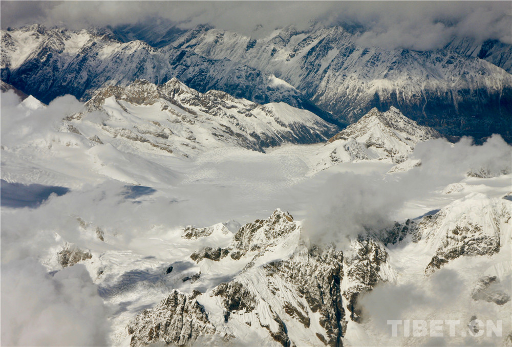 圖為俯瞰雪中的青藏高原,地貌是如此的奇特