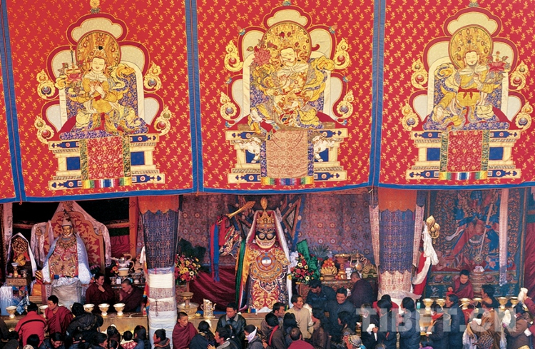 每年藏歷的六月底,在寺院靜休了一兩個(gè)月的僧人們解禁出寺,百姓為了犒勞僧人,備上自釀的酸奶敬奉,并舉行郊游野宴,為他們帶去藏戲表演……雪頓節(jié)由此形成。每年藏歷7月1日,雪頓節(jié)的開(kāi)始也拉開(kāi)了下半年節(jié)日的序幕。