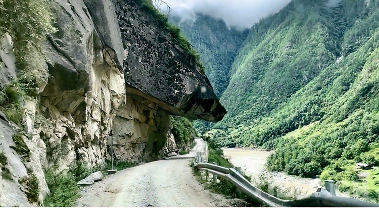 察隅縣到察瓦龍鄉(xiāng)有220公里,需要翻越海拔4764米的折拉山口和海拔4756米的金拉山口,兩山之間要穿過(guò)一個(gè)雨林,總體路況還是不錯(cuò)的,除了少數(shù)地方被水流沖毀、需要繞便道以外,絕大多數(shù)路段都是平整的砂石路。