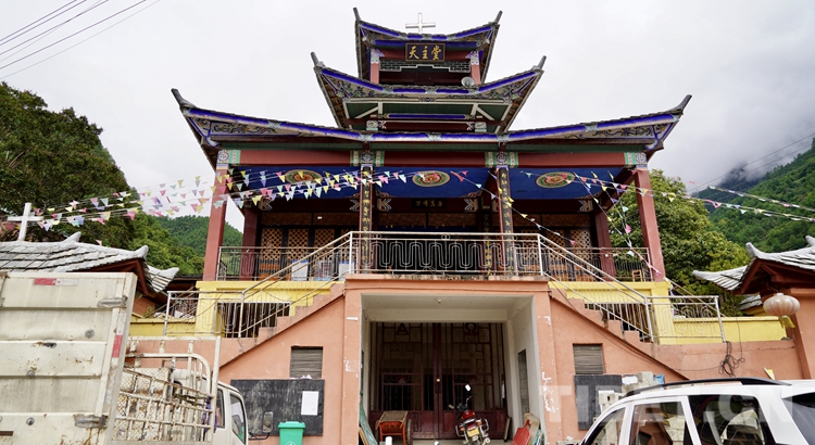 村口正在修路,一條窄窄的小道往山上攀升,3公里后就見(jiàn)到了村子。奇怪的是,村子里一個(gè)人也見(jiàn)不著,我們將車(chē)停下,正準(zhǔn)備下來(lái)四處看看,忽然上方傳來(lái)整齊的誦讀聲,抬頭一看,我們停車(chē)的地方立著一棟中式的仿古建筑,上面掛著一塊豎匾,上書(shū):天主堂。一看日子,今天是星期天,村民們都在教堂做禮拜呢!輕輕地上樓,教堂的大門(mén)敞開(kāi)著,幾十位村民坐在里面,誦讀著圣經(jīng)。我們靜靜地聽(tīng)了一會(huì)兒,他們開(kāi)始唱詩(shī),歌詞聽(tīng)不懂,甚至聽(tīng)不出是哪種語(yǔ)言。唱完之后村民們突然紛紛站起來(lái),彼此微笑,開(kāi)始與身邊的人緊握雙手。把身邊夠得著的人的手都握一遍后,又恢復(fù)了安靜。我們?cè)诤竺婵吹贸錾?,被那種祥和感動(dòng)。