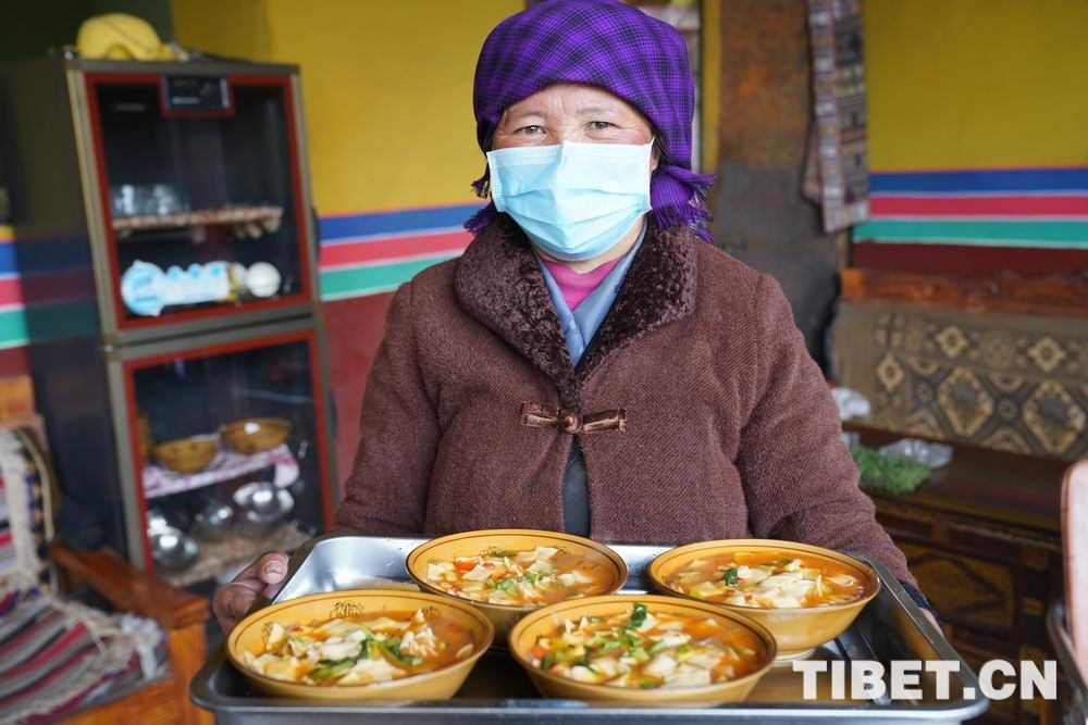 圖為央金為客人上菜 攝影:曲杰