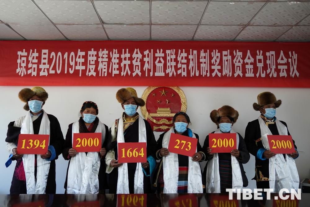 2020年3月26日,瓊結(jié)縣召開精準扶貧利益聯(lián)結(jié)機制獎勵資金兌現(xiàn)會議,嘎瑪旺堆作為代表參加了會議,同時拿到了2000元的獎勵資金。當時他說:“2017年11月,黨的好政策讓我們一家摘掉了貧困戶的‘帽子’。今天領(lǐng)到了縣里獎勵資金很激動,感謝黨、感謝政府?!?/p>