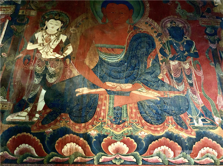 位于札達(dá)縣城西北的托林寺,建于公元996年,是阿里地區(qū)最古老的佛教寺院。它在整個(gè)藏傳佛教史中扮演了承上啟下的重要角色。托林寺原有三座大殿和近十座中小殿堂,以及僧舍、經(jīng)堂、佛塔等建筑,現(xiàn)保存較好的只有三大殿和托林塔,內(nèi)中的壁畫精美絕倫,為整個(gè)“古格壁畫”的重要構(gòu)成部分。