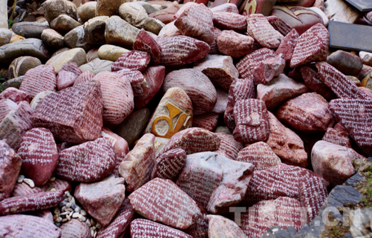 圖為刻滿經(jīng)文的瑪尼石