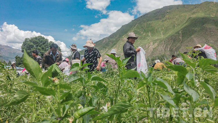 圖為林芝市朗縣仲達村村民正在采收辣椒 攝影:趙耀