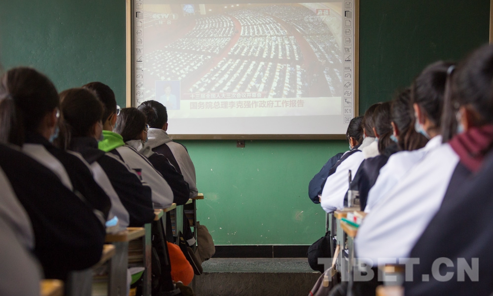 中國西藏網(wǎng)訊 5月22日,第十三屆全國人民代表大會(huì)第三次會(huì)議22日上午在人民大會(huì)堂開幕。西藏自治區(qū)拉薩市第三高級中學(xué)的師生通過直播的方式觀看開幕式。