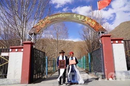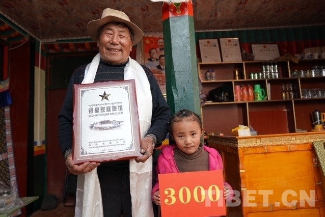 圖為瓊結(jié)縣普布旦增家經(jīng)營(yíng)的雪康桑家庭旅館榮獲“銀星”家庭旅館 攝影:曲杰