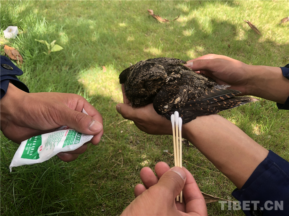 為確保夜鷹得到及時有效救助,中隊指戰(zhàn)員對幼鳥進(jìn)行傷口消毒和簡單包扎后,及時聯(lián)系察隅縣林業(yè)和草原局,工作人員將它帶回進(jìn)一步治療,待它健康后放歸大自然。