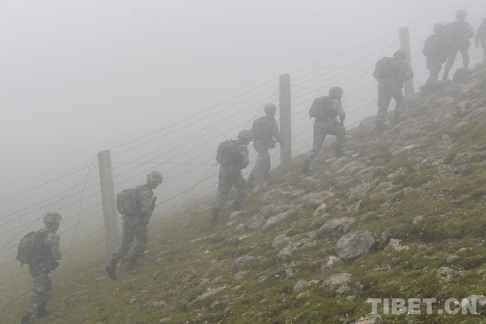 日前,在連隊(duì)指導(dǎo)員高軍杰的帶領(lǐng)下,每名官兵負(fù)重30斤,再一次踏上了巡邏路。這次巡邏的任務(wù)是為3個(gè)界樁描紅,并在途中檢查沿線的鐵絲網(wǎng),官兵們先抵達(dá)20號界樁,然后越過河谷地帶,到達(dá)19號界樁,再到海拔5300米的18號界樁后返回。此次巡邏任務(wù),采取車行巡邏和徒步巡邏相結(jié)合的方式進(jìn)行。