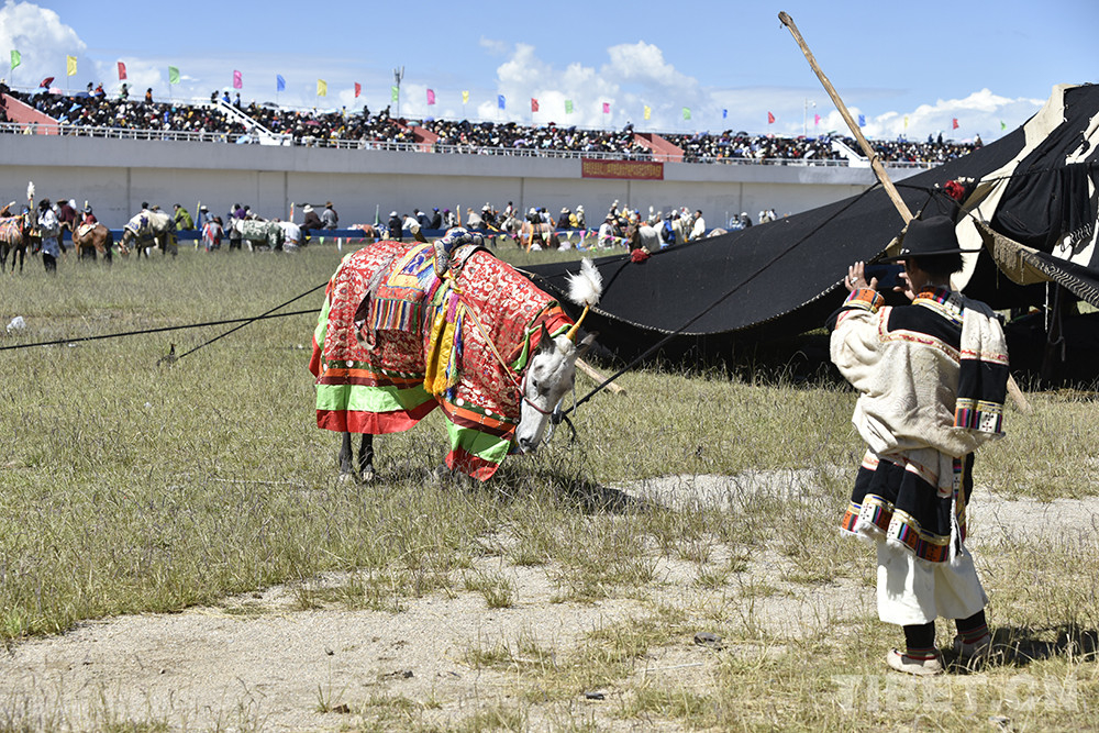 8月12日上午,西藏自治區(qū)那曲市2020羌塘恰青格薩爾賽馬藝術(shù)節(jié)的重頭戲——場(chǎng)內(nèi)速度賽馬比賽開(kāi)始。賽道內(nèi),沙塵飛濺;看臺(tái)上,座無(wú)虛席,吶喊助威。
