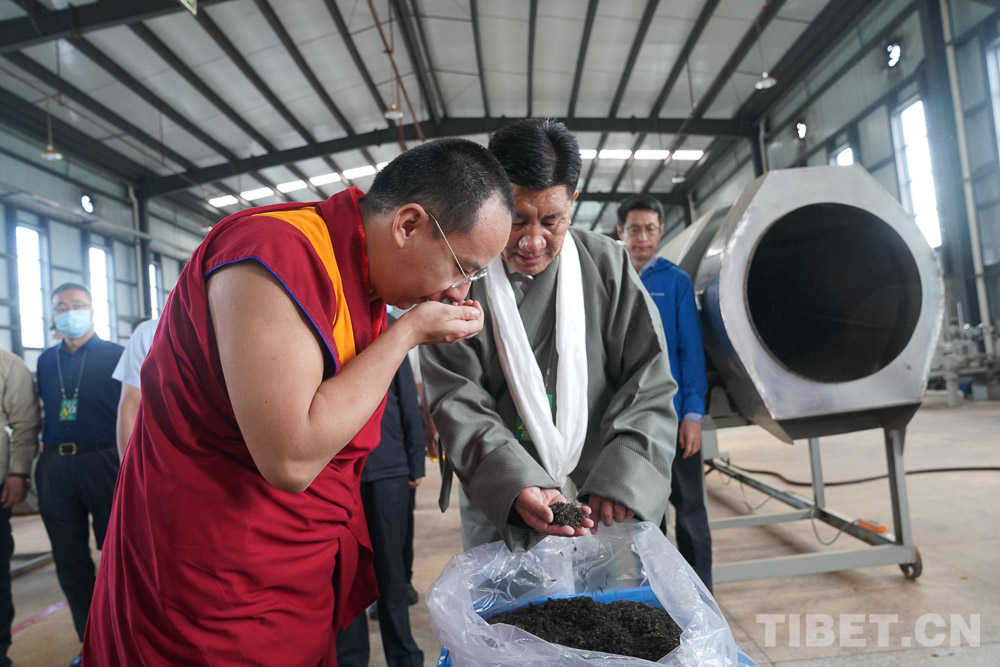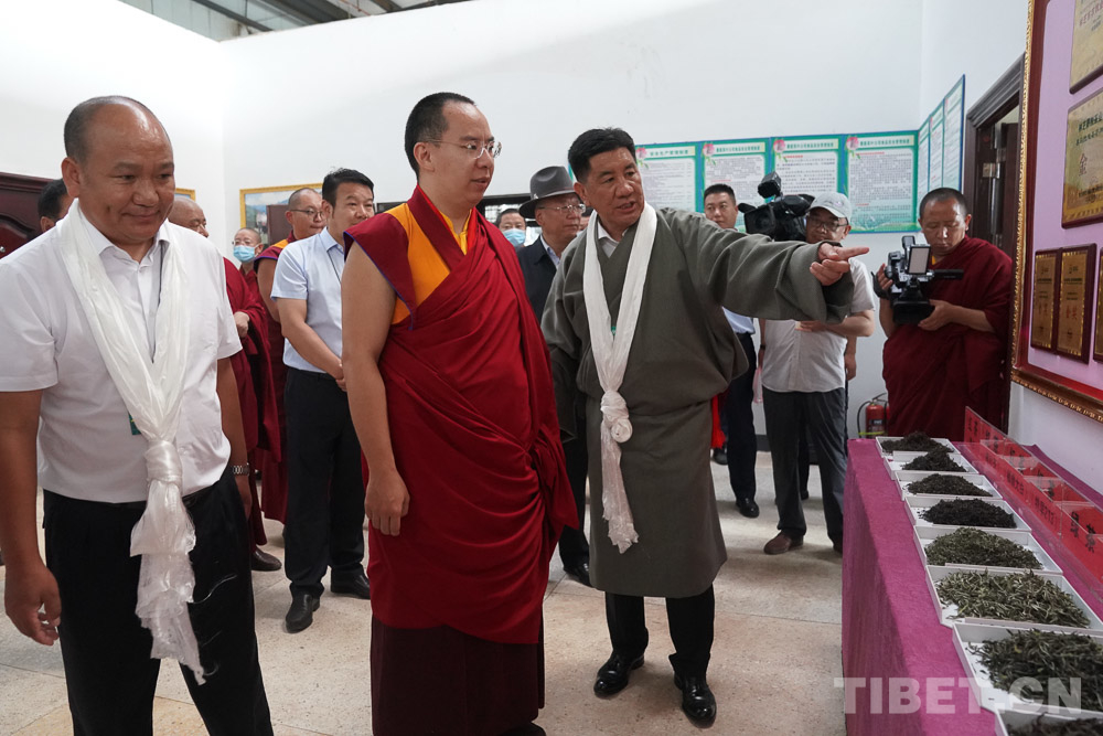 圖為十一世班禪在茶場(chǎng)內(nèi)察看茶葉加工情況 攝影:王淑