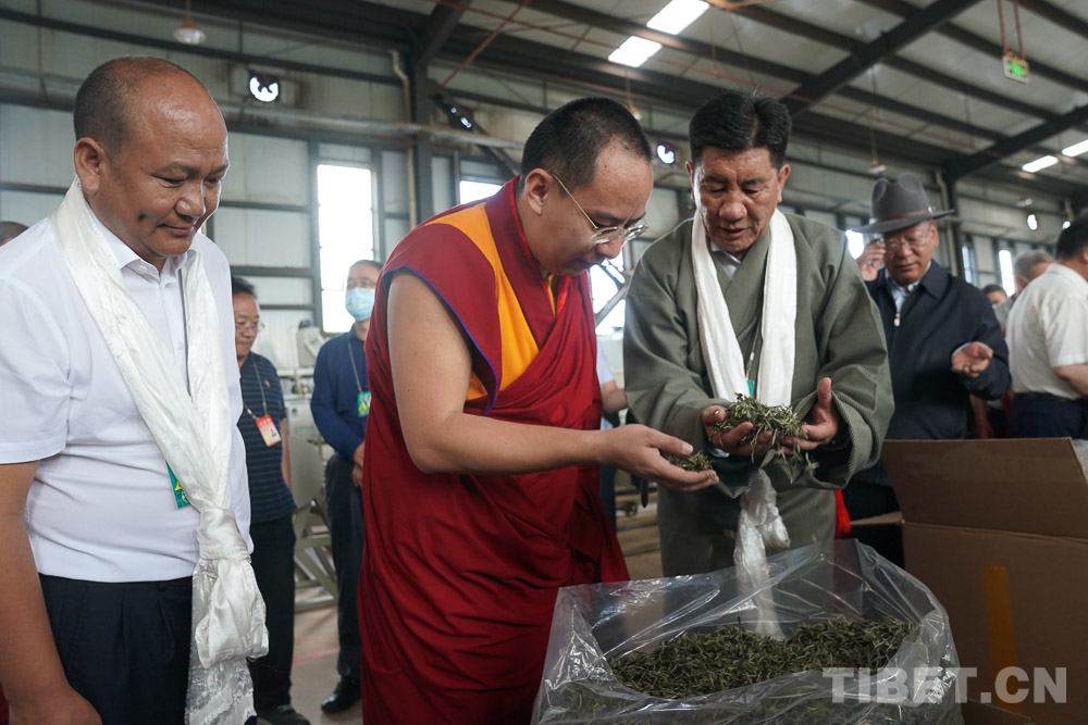 圖為十一世班禪在茶場(chǎng)生產(chǎn)車間察看茶葉加工情況 攝影:王淑