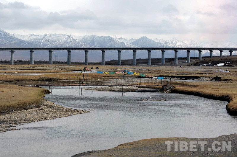 乘坐“天路”列車,通過藏北高原時,我喜歡從車窗遠望。因為這片鐵路依傍著青藏公路的廣袤高原草甸地區(qū),不僅能看見藏羚羊、藏原羚、藏野驢等野生動物;還能看到清水河、楚瑪爾河、秀水河、長江源等江河上的特大橋。這些蜿蜒而上的特大橋以橋代路,在很好地保護凍土和草原綠地的同時,也為藏羚羊等野生動物在這一帶棲息和遷徙提供了保障通道。