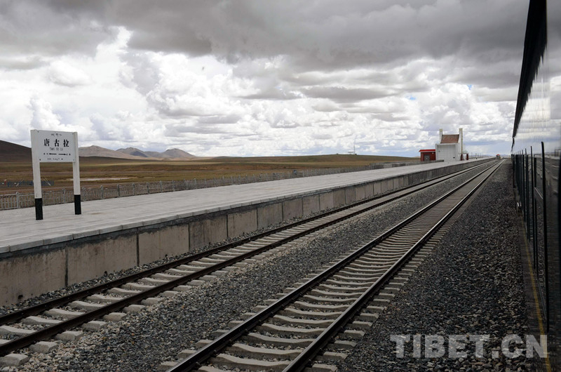 圖為一列車正在通過世界上海拔最高的“天路”——唐古拉火車站(唐召明2014年攝)