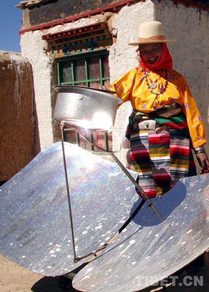 圖為這是藏北申扎縣牧民群眾在使用太陽能灶燒水煮肉 唐召明提供,2005年10月13日攝