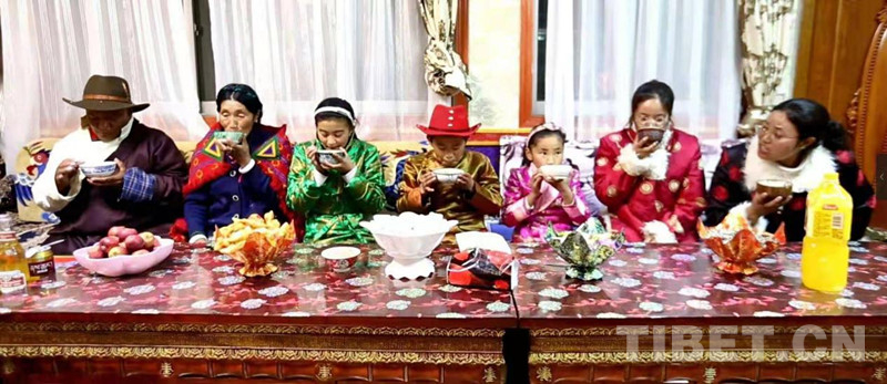 2月10日晚,藏歷新年“古突”夜,在西藏自治區(qū)阿里地區(qū)獅群河鎮(zhèn)康樂(lè)新居易地扶貧搬遷點(diǎn)居住的索南旺久一家,換上了節(jié)日的盛裝,準(zhǔn)備好傳統(tǒng)美食“古突”,在自家寬敞明亮的房子內(nèi),共慶傳統(tǒng)佳節(jié)的到來(lái)。索南旺久說(shuō),因?yàn)橛悬h的好政策,他們一家搬到了寬敞明亮的大房子,現(xiàn)在日子越過(guò)越紅火,年味也就更濃了。