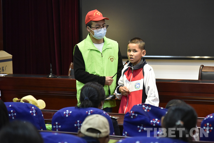 在拉薩市特殊學校會議室里,志愿者和特校兒童聊天談心、互動游戲,會議室里不時傳來陣陣掌聲和歡笑聲。
