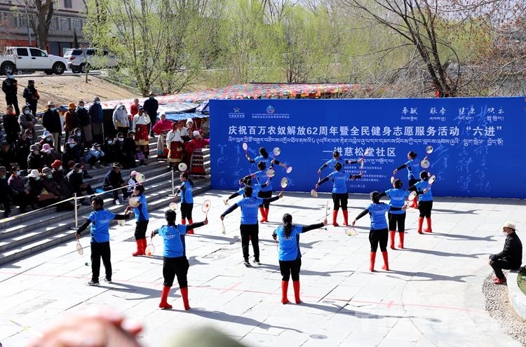 中國西藏網(wǎng)訊 3月27日,為慶祝西藏百萬農(nóng)奴解放62周年,進(jìn)一步貫徹落實全民健身國家戰(zhàn)略,由西藏自治區(qū)體育局、西藏自治區(qū)體育總會、慈松塘社區(qū)黨支部主辦的慶祝百萬農(nóng)奴解放62周年暨全民健身志愿服務(wù)“六進(jìn)”活動走進(jìn)慈松塘社區(qū)。