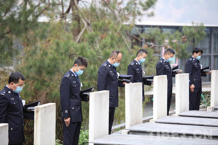 “因?yàn)槲覀冇颜x橋執(zhí)勤點(diǎn)處于疫情防控一線,我們沒(méi)有到烈士陵園實(shí)地打掃,今年的祭掃改為網(wǎng)絡(luò)祭掃,民警們通過(guò)國(guó)家公祭網(wǎng)祭掃通道開(kāi)展‘追思?xì)v史、忠誠(chéng)履職’活動(dòng)?!痹撜居颜x橋執(zhí)勤點(diǎn)黨支部副書(shū)記尼瑪云丹說(shuō)。