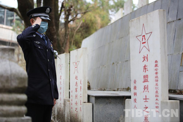 圖為西藏聶拉木出入境邊防檢查站民警到樟木烈士陵園開(kāi)展清明節(jié)祭奠革命先烈活動(dòng) 攝影:索朗次仁