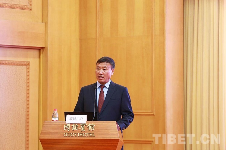 圖為群澤巴登在研討會上發(fā)言 攝影:楊月云