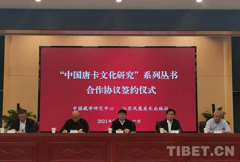 中國西藏網(wǎng)訊 5月12日,中國藏學(xué)研究中心與江蘇鳳凰出版?zhèn)髅郊瘓F(tuán)江蘇鳳凰美術(shù)出版社就“中國唐卡文化研究”系列叢書合作協(xié)議簽字儀式在京舉行。藏研中心黨組書記陳宗榮,江蘇省委宣傳部常務(wù)副部長、省新聞出版局(省版權(quán)局)局長、省電影局局長焦建俊,江蘇鳳凰美術(shù)出版社社長陳敏,藏研中心藏醫(yī)藥研究所副所長羅布扎西分別致辭。藏研中心副總干事廉湘民主持簽字儀式。