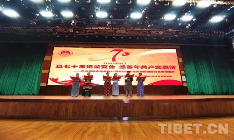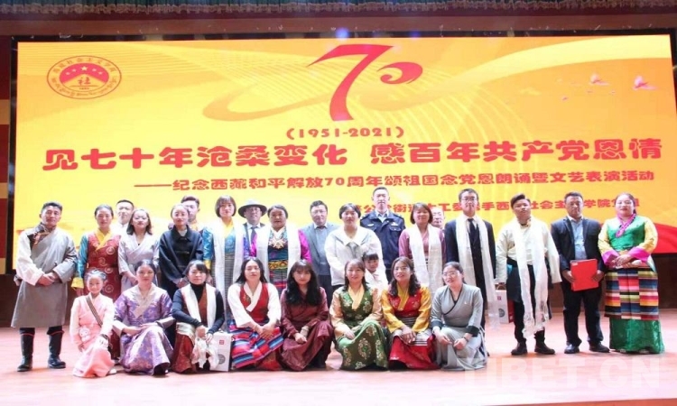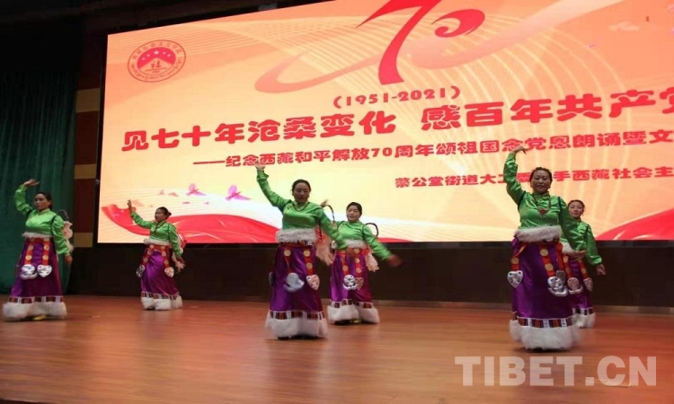 5月23日是西藏和平解放70 周年紀念日。23日上午,由西藏自治區(qū)拉薩市蔡公堂街道和西藏社會主義學院共同舉辦的紀念西藏和平解放70周年頌祖國、念黨恩朗誦暨文藝表演活動舉行?,F(xiàn)場鮮花嬌艷,燈光炫目,旋律悠揚,歌聲嘹亮。