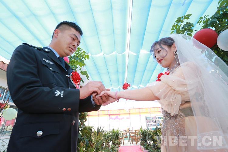 “今天能在警營里完成婚禮,非常的激動。結(jié)婚是女人一生中最幸福的時刻,非常感謝單位的領(lǐng)導能給我們這樣的機會,讓我倆一起度過人生中最幸福的時刻。這次的婚禮非常的有意義,將是我們一生中最寶貴的回憶,警營讓我成為最美麗的新娘?!毙履锿鯊溺鴾I激動地說。(中國西藏網(wǎng) 通訊員/張拴根 記者/王佳豪)