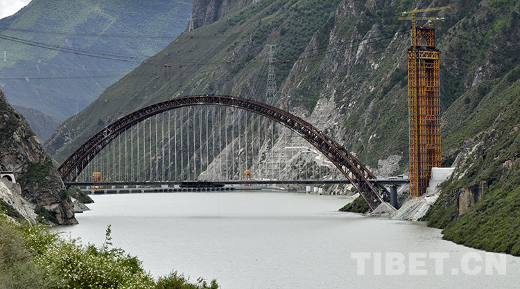 藏木雅魯藏布江特大橋創(chuàng)造了世界同類型鐵路橋梁海拔最高(海拔3350米)、鋼管拱跨度最大(主跨430米)、主拱鋼管直徑最大(鋼管直徑1.8米)、鋼管拱單根管內(nèi)混凝土頂升方量最多(單根管內(nèi)混凝土頂升方量1022方)的四個(gè)“世界第一”。