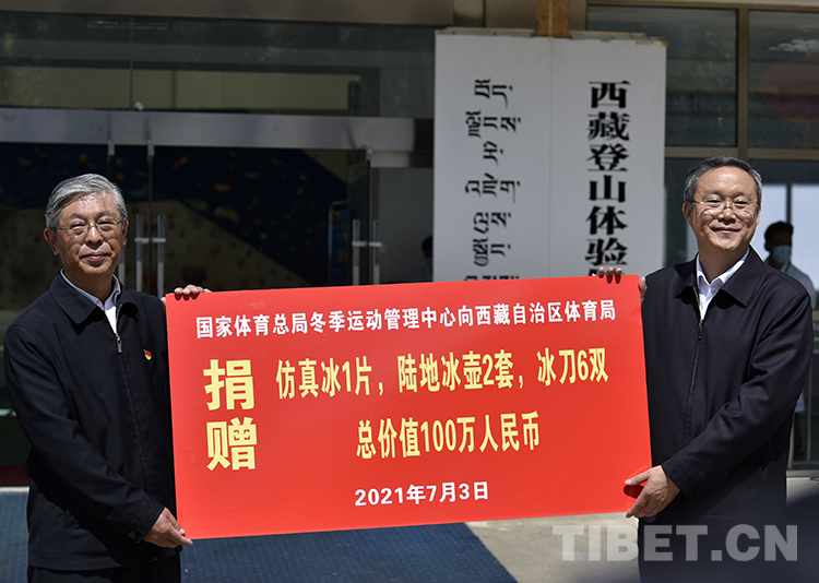 中國西藏網(wǎng)訊 7月3日,國家體育總局冬季運動管理中心向西藏自治區(qū)體育局捐贈物資儀式在拉薩市舉行。西藏自治區(qū)體育局獲贈仿真冰、陸地冰壺、冰刀等總價值100萬元的設施設備,助力冬季運動項目發(fā)展。