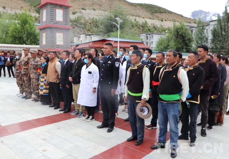 圖為西藏山南白堆鄉(xiāng)干部群眾7月1日共同參加升國(guó)旗儀式