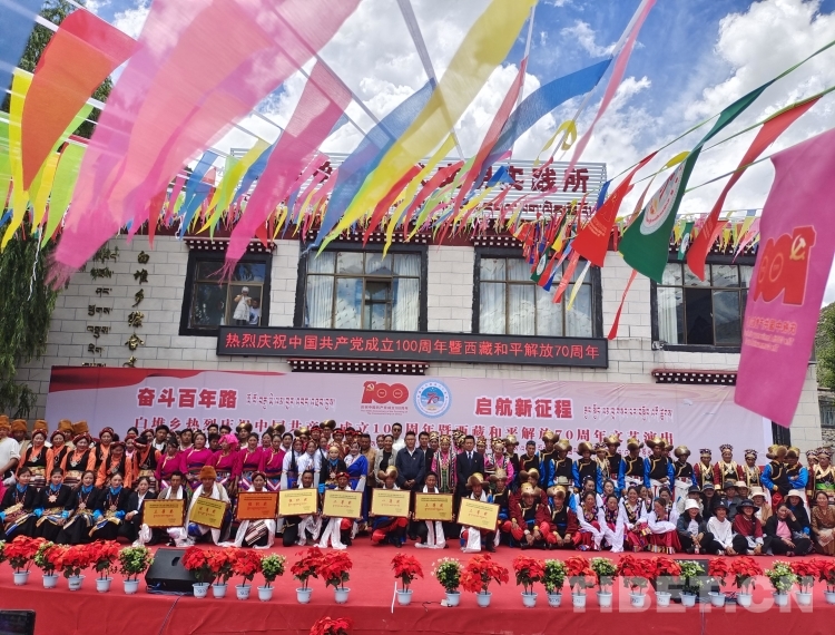 為慶祝中國(guó)共產(chǎn)黨成立100周年暨西藏和平解放70周年, 7月1日,白堆鄉(xiāng)還舉辦了第三屆民間文藝匯演??h民間藝術(shù)團(tuán)、各村文藝演出隊(duì)和鄉(xiāng)機(jī)關(guān)干部用舞蹈與歌聲展現(xiàn)出人們的美好生活以及對(duì)黨的感恩對(duì)祖國(guó)的熱愛(ài)。通過(guò)精彩的文藝節(jié)目,弘揚(yáng)奮斗精神,謳歌黨的光輝歷程。