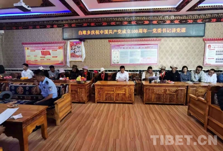 圖為西藏山南白堆鄉(xiāng)7月1日開(kāi)展黨課學(xué)習(xí)