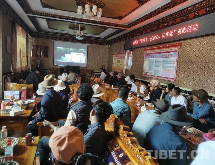 圖為西藏山南白堆鄉(xiāng)7月1日觀看紅色影片