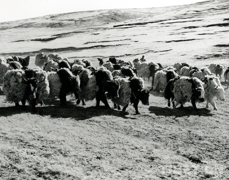 這是過去馱運所交售羊毛的牦牛隊(唐召明1987年攝)