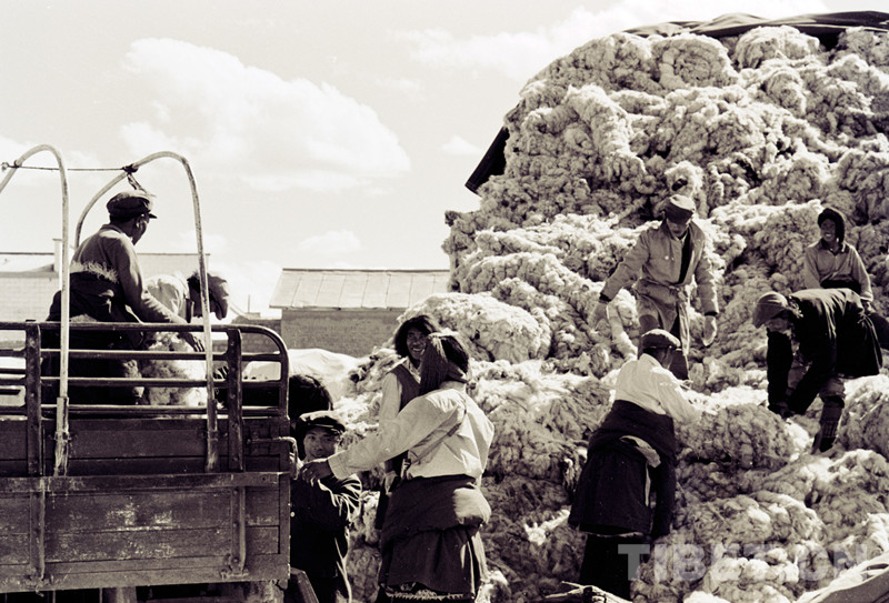 這是藏北雙湖辦事處(現(xiàn)雙湖縣)和平鄉(xiāng)牧民正在裝車外運交售的畜產(chǎn)品(唐召明1987年攝)