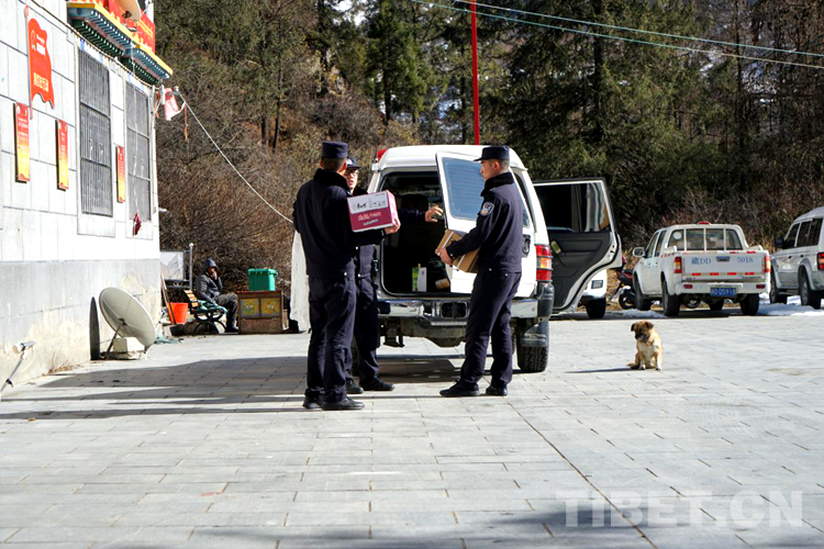 圖為洛桑旦增與民警們將宣傳冊(cè)裝上車