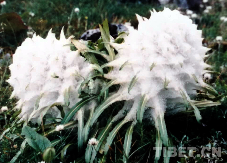 1988年盛夏,我來到雙湖辦事處(現(xiàn)雙湖縣)西亞爾雪山,飽覽了雪蓮的風(fēng)姿。它長著密密的葉子,全身披掛白色的長長的棉毛,宛若棉球。有趣的是,它棉毛交織,形成了無數(shù)的“小溫室”,創(chuàng)造了自身的小氣候。白天,高原上火辣辣的陽光對它好像特別偏愛,它從陽光吸收的熱量超過周圍的土壤和空氣。到了夜間,它又施展抵抗寒冷的特殊本領(lǐng),溫度下降的很緩慢。自我保護的本領(lǐng)使它能有效地保暖御寒,防止水分蒸發(fā),而滿身長長的棉毛又是一頂保護傘,使自己免遭高原強烈紫外線輻射的傷害。它頂端的條狀花瓣,又常常受到兩面長棉毛的保護……這些形態(tài)特征和特殊的適應(yīng)性使雪蓮能在高寒貧瘠的高山上生長、繁育、延續(xù)后代。