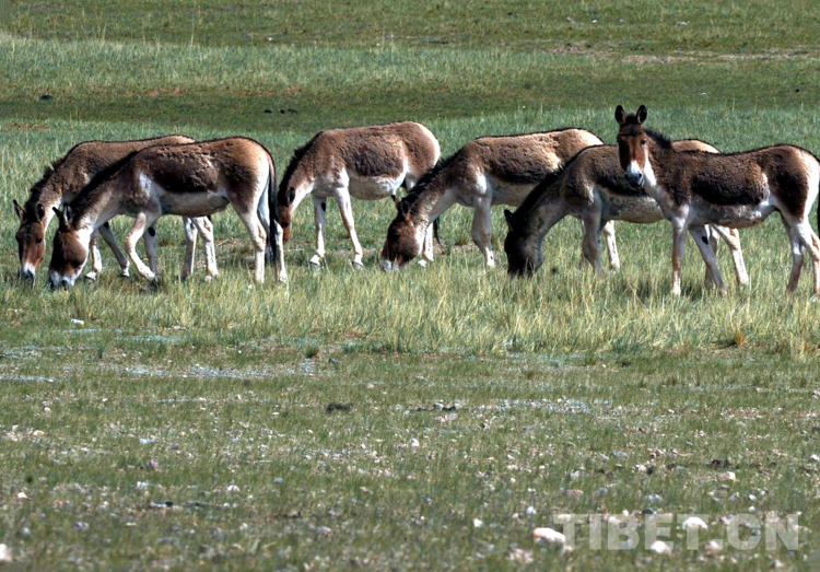 藏野驢,每年7月份為交配期,時間持續(xù)一個月。交配無固定場所。第二年7月份產(chǎn)崽。它們喜歡群居生活,少則四五頭,多則成百上千頭一起活動,為藏北草原最常見的大型動物。