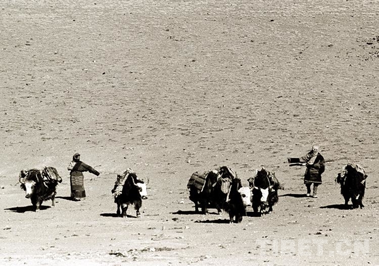 這是逐水草而居,趕著馱物牦牛正在轉(zhuǎn)移草場(chǎng)的雙湖辦事處(現(xiàn)雙湖縣)牧民人家(唐召明1987年攝)