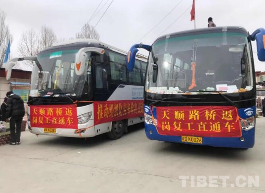 去年3月,面對突如其來的新冠肺炎疫情,日喀則市江孜縣對首批前往天順路橋建設項目組施工地的115名務工人員,統(tǒng)一安排9輛運輸車開啟“一站式”免費直達運輸服務。衛(wèi)生防疫工作人員對專送車輛提前進行消毒,并為務工人員進行身體健康檢查,統(tǒng)一配發(fā)防護口罩,確保了農牧民在保障自身安全的同時能安心外出就業(yè)。