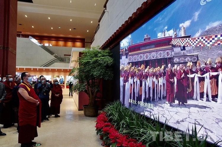 2021年7月21日至23日,習(xí)近平總書記親臨西藏考察調(diào)研,發(fā)表重要講話,充分肯定西藏經(jīng)濟社會發(fā)展各項事業(yè)取得的巨大成就,就進一步做好新時代西藏各項工作提出了明確要求。在報道習(xí)近平總書記考察西藏新聞的數(shù)字屏前,班禪駐足停留,認(rèn)真觀看有關(guān)報道,不時低頭沉思。