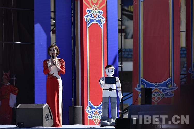 圖為2021雅礱文化旅游節(jié)開幕式文藝演出現(xiàn)場,主持人與機(jī)器人互動(dòng) 攝影:王媛媛