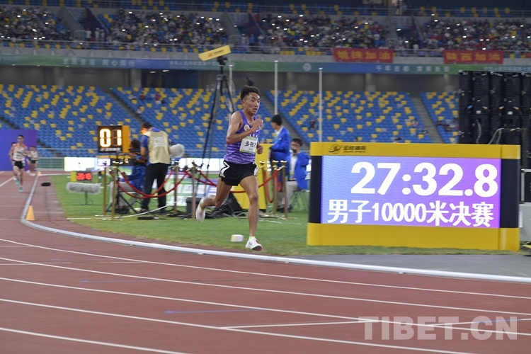 在田徑項目男子10000米決賽中,西藏自治區(qū)選手多布杰以28分35秒24的成績力壓群雄,勇奪冠軍,為西藏奪得本屆全運會第二金,蟬聯(lián)兩屆全運會該項目的冠軍。
