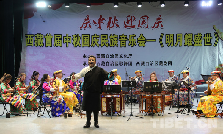 中國西藏網(wǎng)訊 器樂齊奏、堆諧奔放、歌曲悠揚(yáng)……9月25日晚,一臺以“享民樂美、敘佳節(jié)情”為主題的民族音樂會——《明月耀盛世》在西藏自治區(qū)藏劇團(tuán)上演。作為西藏自治區(qū)首屆中秋國慶民族音樂會,音樂會營造了濃厚喜慶的節(jié)日氛圍。