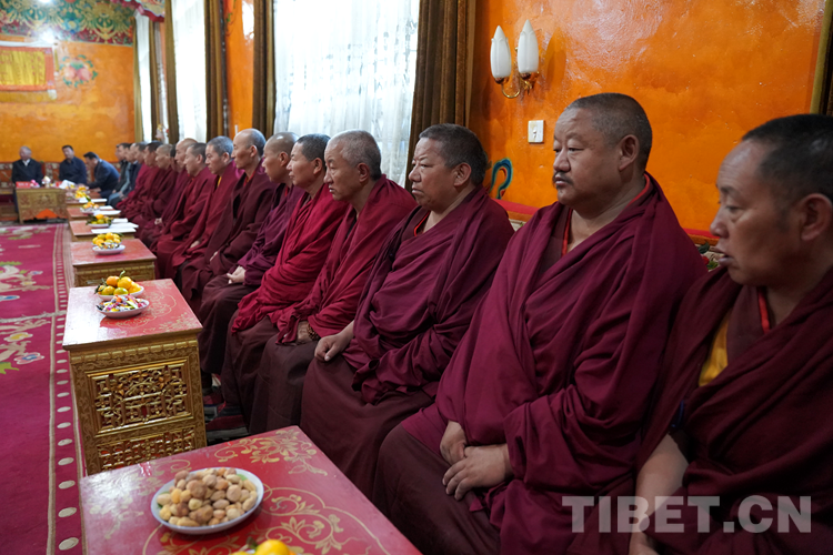 張延清說(shuō),今年,在中國(guó)共產(chǎn)黨成立100周年,西藏和平解放70周年之際,習(xí)近平總書記作為中共中央總書記、國(guó)家主席、中央軍委主席到西藏慶祝西藏和平解放,在黨和國(guó)家歷史上是第一次,充分體現(xiàn)了以習(xí)近平同志為核心的黨中央對(duì)邊疆地區(qū)的深情牽掛、對(duì)西藏工作的高度重視、對(duì)西藏各族干部群眾的深厚感情。7月22日下午,習(xí)近平總書記來(lái)到建寺600多年的哲蚌寺,受到了全寺僧人最高禮遇的迎接。習(xí)近平總書記充分肯定了哲蚌寺在擁護(hù)中國(guó)共產(chǎn)黨、擁護(hù)社會(huì)主義制度、維護(hù)祖國(guó)統(tǒng)一等方面做出的積極貢獻(xiàn),并關(guān)心詢問(wèn)僧人身體狀況特別是老年僧人健康問(wèn)題,在場(chǎng)的僧人都很感動(dòng)??v觀世界,國(guó)家領(lǐng)導(dǎo)人如此高度重視宗教工作、如此深情關(guān)懷宗教界人士,唯有中國(guó)、唯有中國(guó)共產(chǎn)黨的領(lǐng)導(dǎo)人。知恩、念恩、感恩、報(bào)恩是菩提心的根本。各位僧人朋友們一定要按照習(xí)近平總書記的指示精神,守法敬業(yè)、愛(ài)國(guó)愛(ài)教、潛心修行、向善為民、利益眾生,真正做慈悲為懷的真佛子。