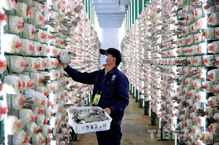這座位于謝通門縣達(dá)那答鄉(xiāng)的食用菌基地占地345畝,建筑面積46.6畝,設(shè)有實(shí)驗(yàn)室、原料庫(kù)、滅菌車間、攪拌車間、打包車間、冷卻車間、液體菌種培養(yǎng)室、接種室、菌包培養(yǎng)室、工廠化出菇棚、冷庫(kù)等,是西藏自治區(qū)唯一一家集菌棒制作、生物菌生產(chǎn)培育、生物質(zhì)燃料與有機(jī)肥制作、種植技能培訓(xùn)于一體的規(guī)?;⒓s化、標(biāo)準(zhǔn)化、現(xiàn)代化、循環(huán)綠色生物科技示范園區(qū)。