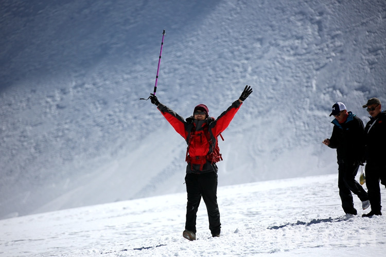 楊女士進藏已有半月,在專業(yè)人士的協(xié)助下她第一次近距離接觸了冰雪世界,并攀登到了海拔5600米的地方?!敖裉煳覜]有高原反應(yīng),帶的氧氣也沒用?!痹谘┥缴蠗钆康呐d奮之情溢于言表。