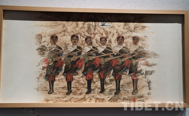 “此次展覽相對齊全,體現(xiàn)了當代藝術家,在總書記文藝系列講話的鼓舞和指引下,以人民為中心關注生活,關注西藏。認真地用自己的語言、藝術,思維來表現(xiàn)社會主義新西藏方方面面的日新月異和成果,我覺得這樣的成果是實實在在地向中國共產(chǎn)黨成立100周年和西藏和平解放70周年獻禮?!敝嫾翼n書力說。